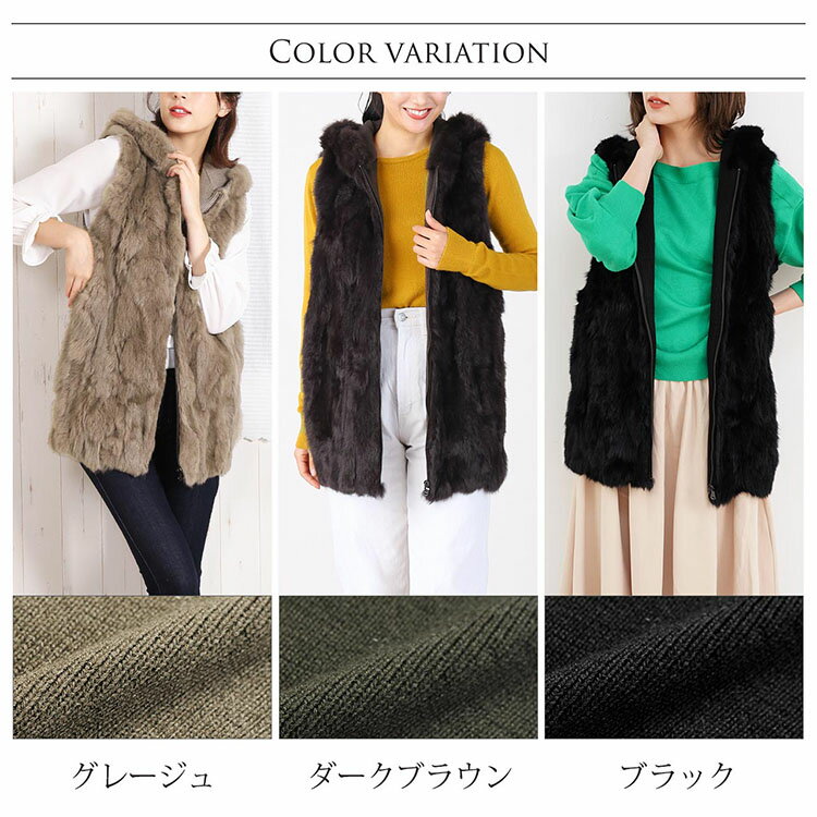 ラビット ファー ニット ベスト レディース 秋冬 フード付き グレージュ/ダークブラウン/ブラック M/L 母 女性 (No.01000720r)