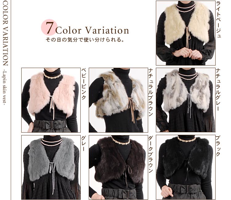 全9色 ラビット ファー ベスト ショート丈 ヒモリボン付 レディース 【1万円以上で送料無料】 ギフト プレゼント