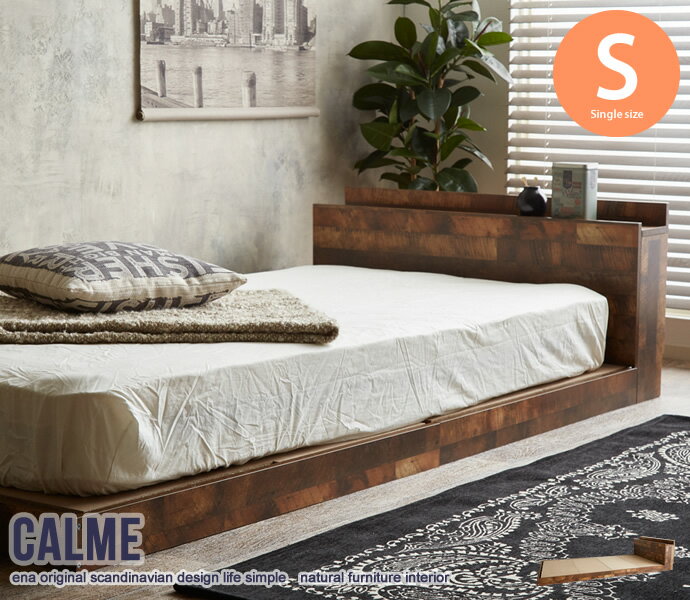 送料無料 寄木柄ベッド シングル ベッドフレーム マットレス付き 木製 棚付き 宮棚付き コンセント付き ローベッド フロアベッド ロータイプ シングルベッド シングルサイズ Cave 高密度アドバンスポケットコイルマットレスセット 西海岸 ブルックリン 北欧 おしゃれ