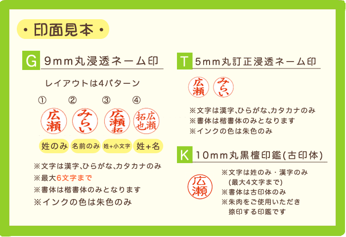 【仕様】 ・GTシルバー:9mm/5mm楷書体 ・GTピンク :9mm/5mm楷書体 ・GKシルバー:9mm楷書体/10mm古印体 ・GKピンク :9mm楷書体/10mm古印体 インク:朱色(顔料系) 重量:13.4g サイズ:13φ×71.5(mm) 印鑑証明には使用しないでください 備考 この商品はポスト投函メール便で発送可能です ※配送方法がポスト投函の場合は、当店発送日からご到着までに3〜5日(日祝除く)ほどかかりますので予めご了承ください (またお届け日時指定はできません。