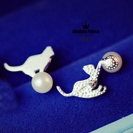 925シルバーピアス・猫 CATモチーフ フェイクパール・大人可愛い♪
